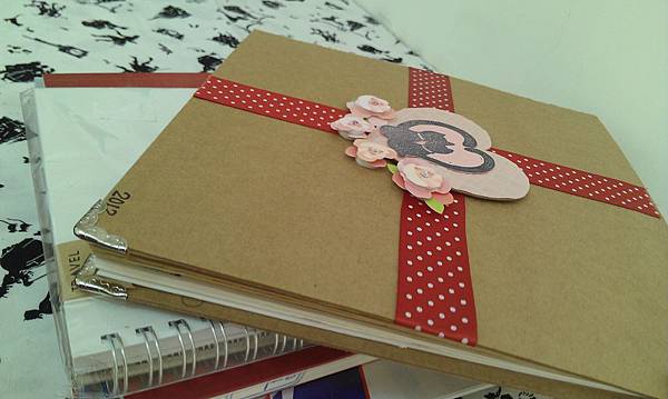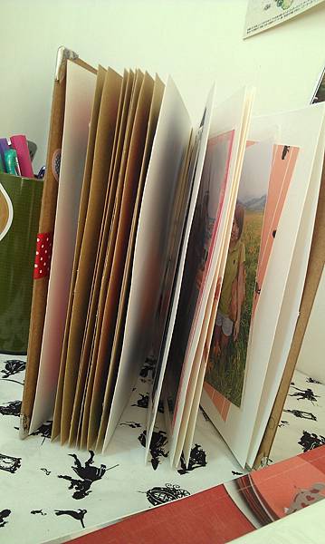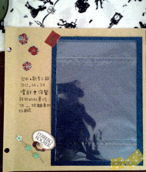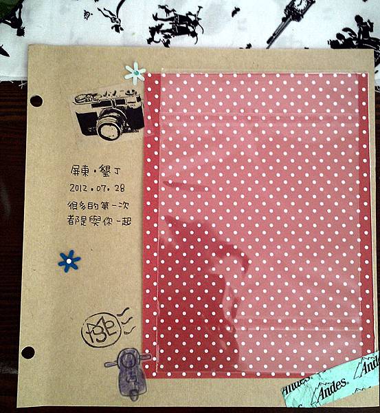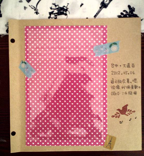 利用了牛皮紙.小貼紙.紙膠帶.印章.及自己收集的一些廣告紙
